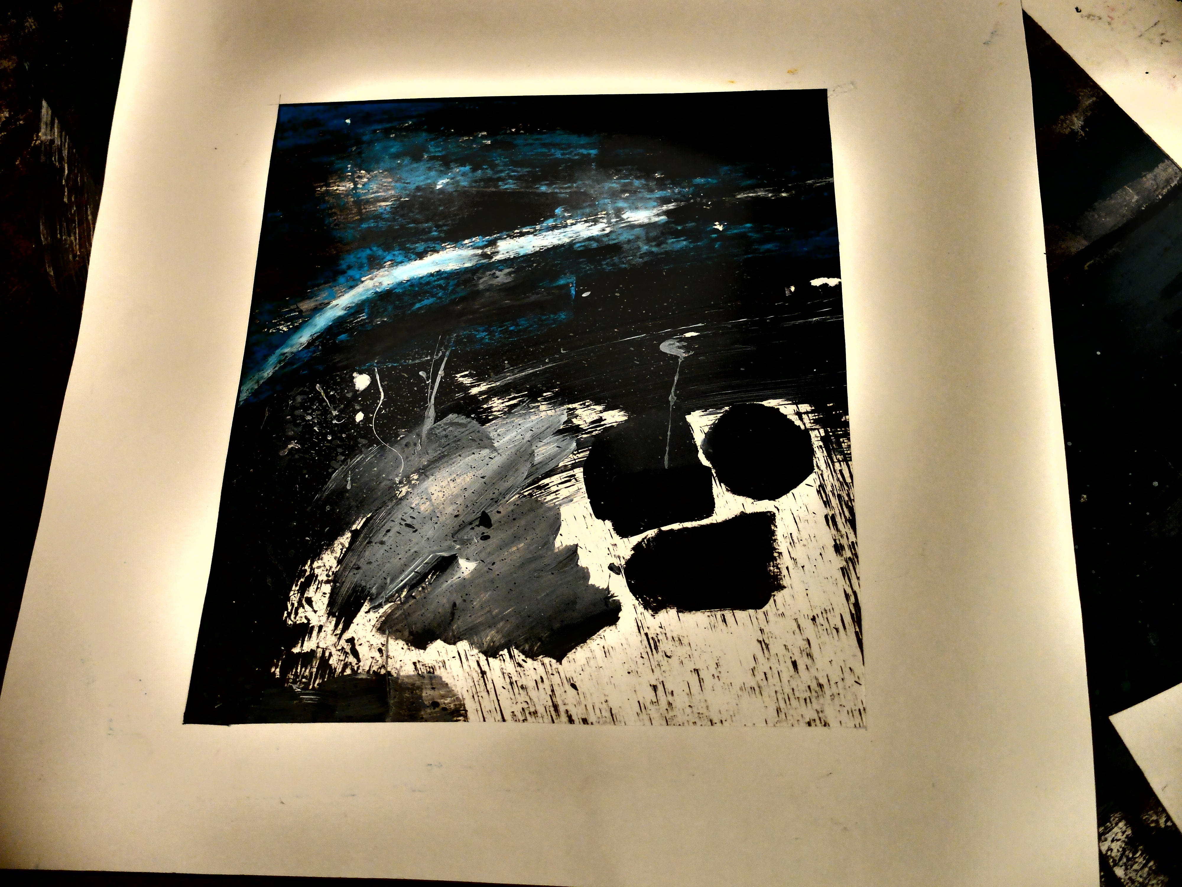 Working in new studio based in Kingsbridge for fast approaching exhibitions with the help of two new studio assistants, Meg and Jye. The new boards have had Gesso applied, and are ready for painting!